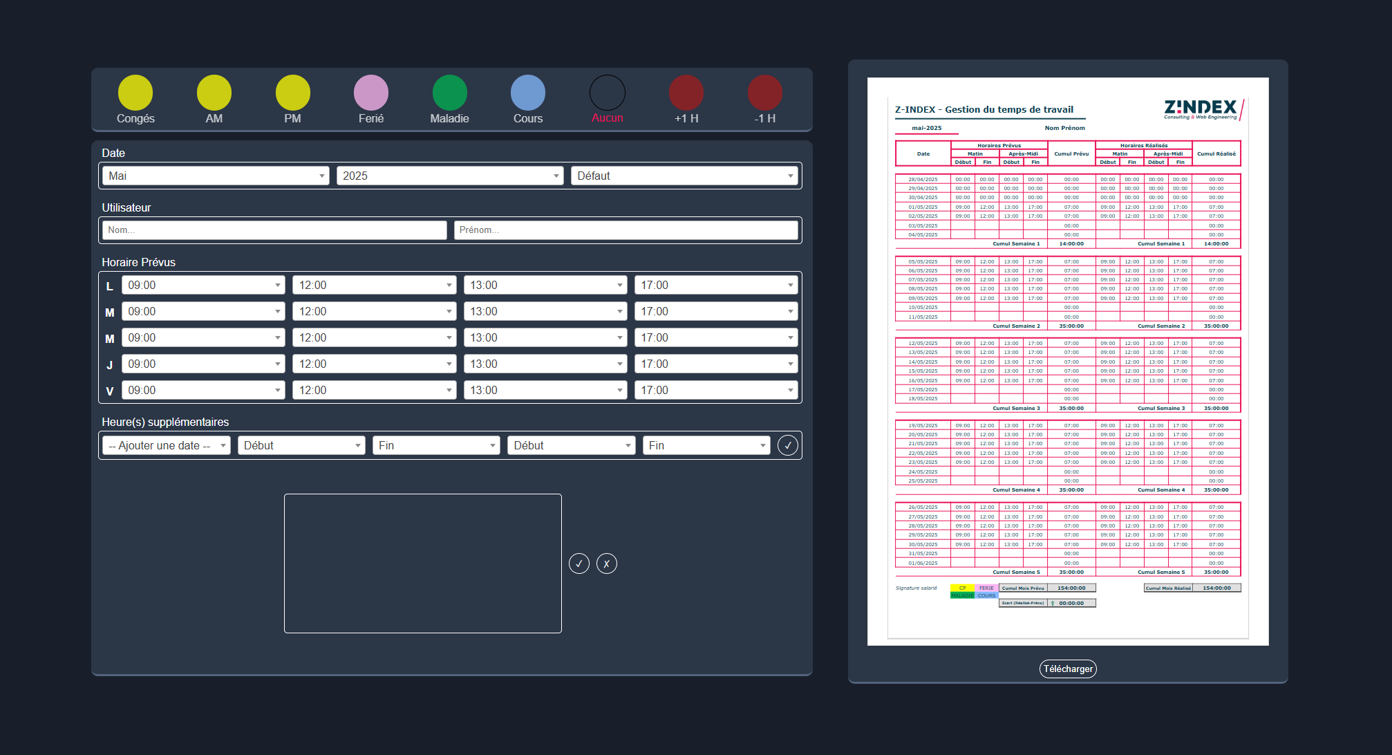 J'ai conçu un outil de génération automatique des feuilles de temps qui a remplacé un processus Excel manuel et chronophage. Cette initiative personnelle a considérablement réduit le temps consacré aux tâches administratives et amélioré l'efficacité de l'ensemble de l'équipe.