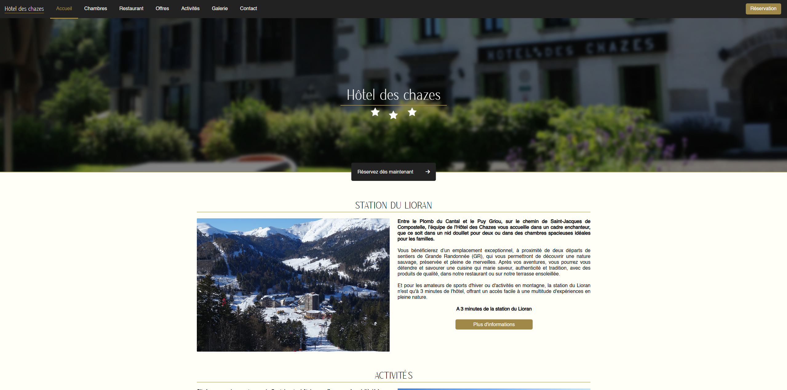 J'ai créé une maquette moderne pour l'Hôtel des Chazes, entreprise familiale, afin de proposer une alternative au site web existant. Ce concept visuel met en valeur le potentiel d'une refonte graphique et présente les possibilités d'amélioration de leur présence en ligne.