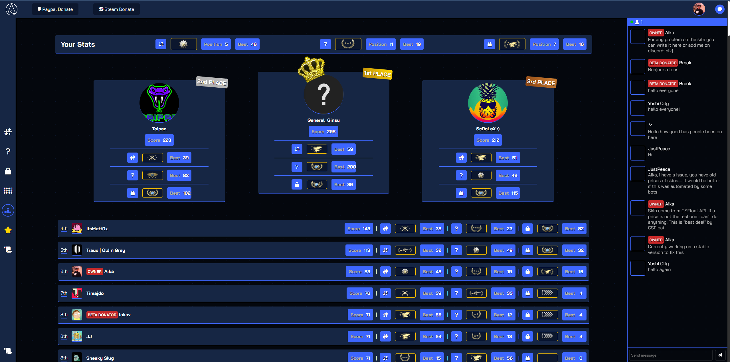 J'ai conçu un site inspiré du jeu Counter-Strike offrant des mini-jeux qui testent les connaissances des joueurs sur l'univers du jeu. La plateforme intègre l'API CSFloat pour afficher les prix réels des items, enrichissant l'expérience utilisateur avec des données authentiques.
